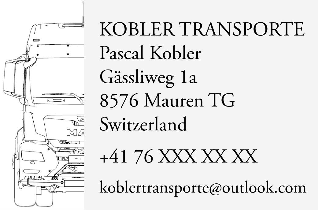 Visitenkarten für «Kobler Transporte» in Mauren TG.